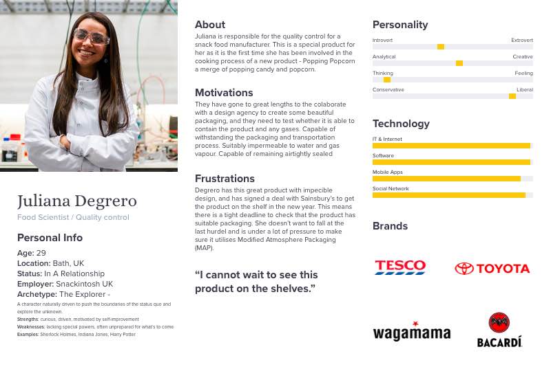 As a user experience designer, one of the most important steps in the design process is identifying the typical users of the product. This can be achieved by creating fictitious characters that consist of stereotypes that align with the behaviour, motivations and interests that then eventually result in understanding what actions these users will take when they arrive to the website, resulting in a considered user journey, with clear objectives stated as call to actions.
